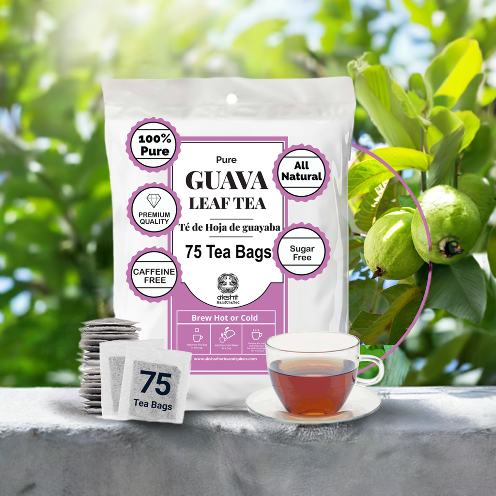 Akshit 75 Guava Leaf Tea Bags offer a powerful herbal wellness solution rooted in traditional plant-based healing. Made from 100% pure, sun-dried Guava leaves with no additives or preservatives, this naturally caffeine-free tea helps support digestive health, and immune defense, making it a smart and soothing daily ritual.